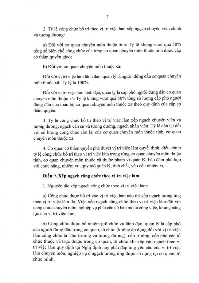 Sau khi bố trí vào vị trí việc làm và xếp ngạch tương ứng, trường hợp cơ quan sử dụng có số lượng thực tế vượt quá tỷ lệ quy định tại Nghị định này thì cơ quan có thẩm quyền thực hiện việc sắp xếp, bố trí để bảo đảm sau ngày 01 tháng 7 năm 2027 thực hiện đúng tỷ lệ theo quy định. Trong thời gian này, không thực hiện việc thay đổi vị trí việc làm có ngạch công chức xếp theo thứ bậc về chuyên môn, nghiệp vụ từ thấp lên cao đối với những vị trí việc làm đã vượt quá tỷ lệ theo quy định.