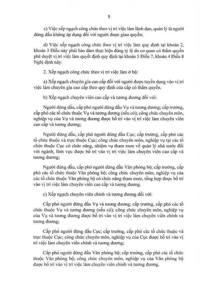 Chậm nhất đến ngày 01 tháng 7 năm 2027, các bộ, ngành, cơ quan trung ương, địa phương phải hoàn thành việc bố trí vào vị trí việc làm và xếp ngạch tương ứng với vị trí việc làm đối với công chức được tuyển dụng trước ngày 01 tháng 7 năm 2025 thuộc phạm vi quản lý. Việc bố trí vào vị trí việc làm và xếp ngạch tương ứng thực hiện như sau: