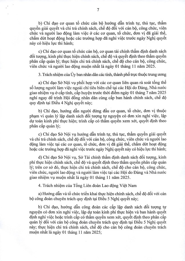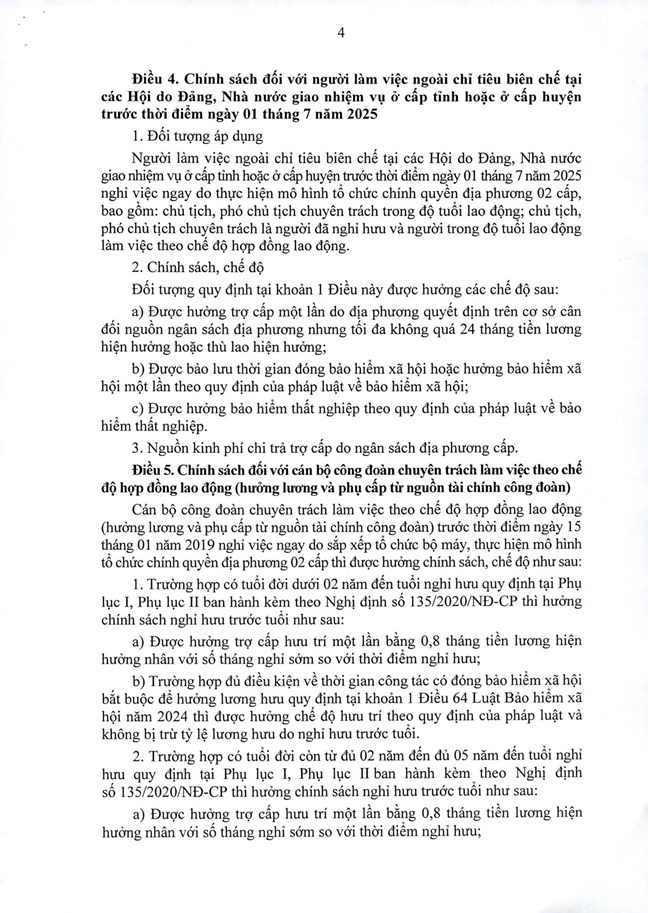 4- Chính sách đối với người làm việc ngoài chỉ tiêu biên chế tại các Hội do Đảng, Nhà nước giao nhiệm vụ ở cấp tỉnh hoặc ở cấp huyện trước thời điểm ngày 1/7/2025;