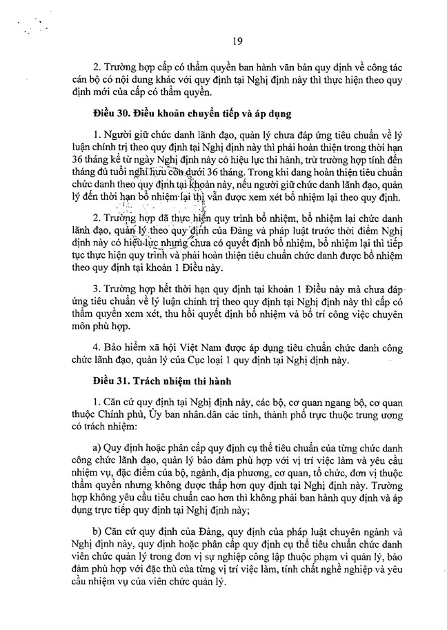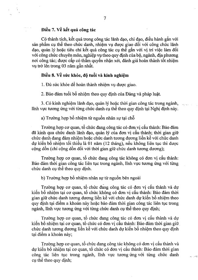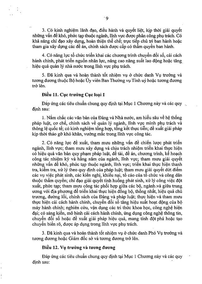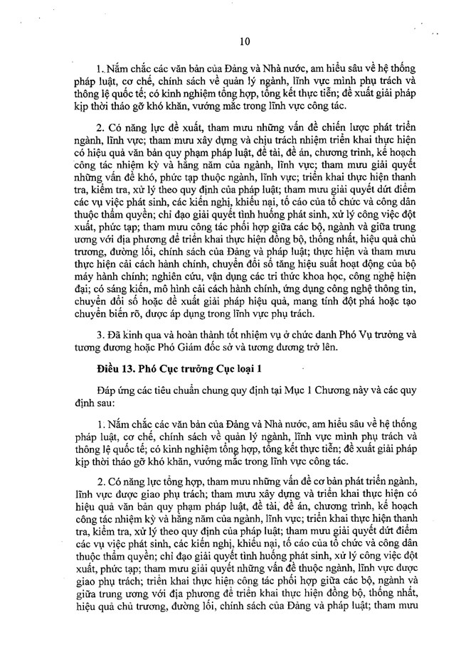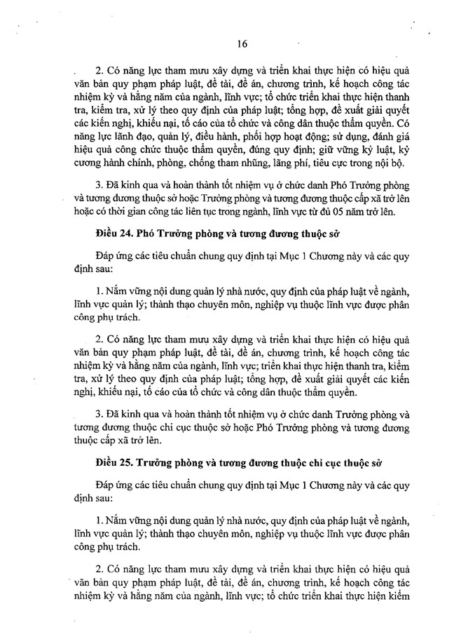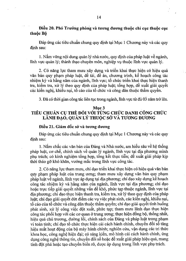 Ngoài ra, Nghị định cũng quy định cụ thể các tiêu chuẩn đối với từng chức danh công chức lãnh đạo, quản lý thuộc Bộ, thuộc sở và tương đương, phòng thuộc cấp xã.