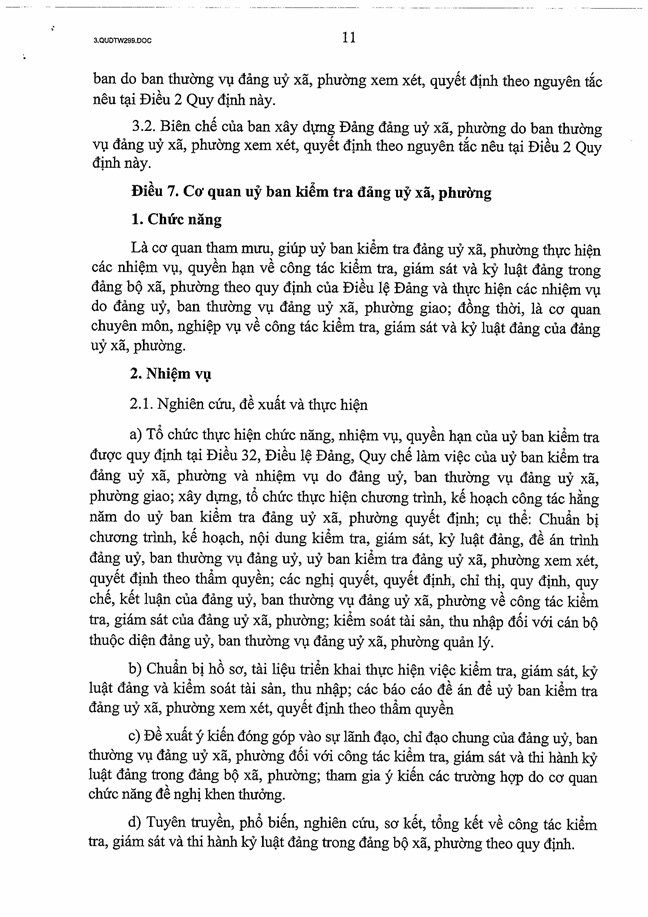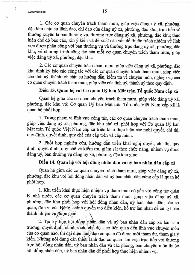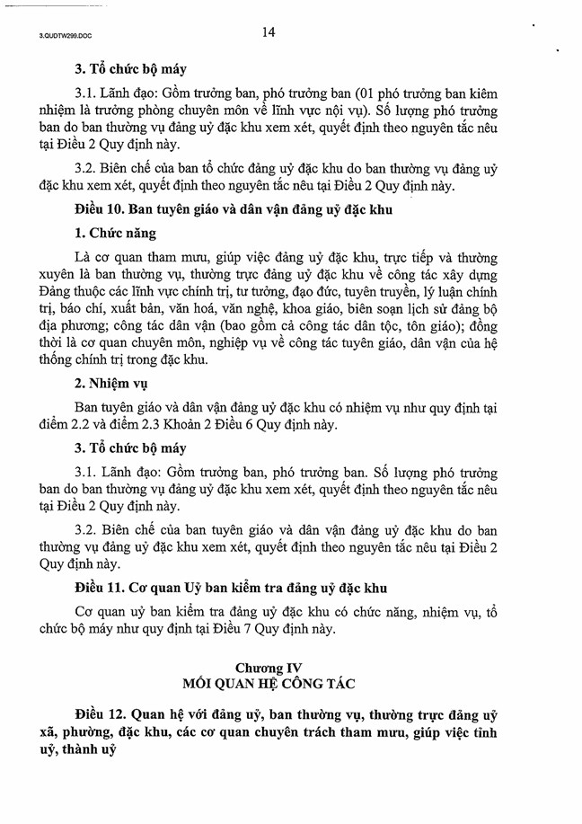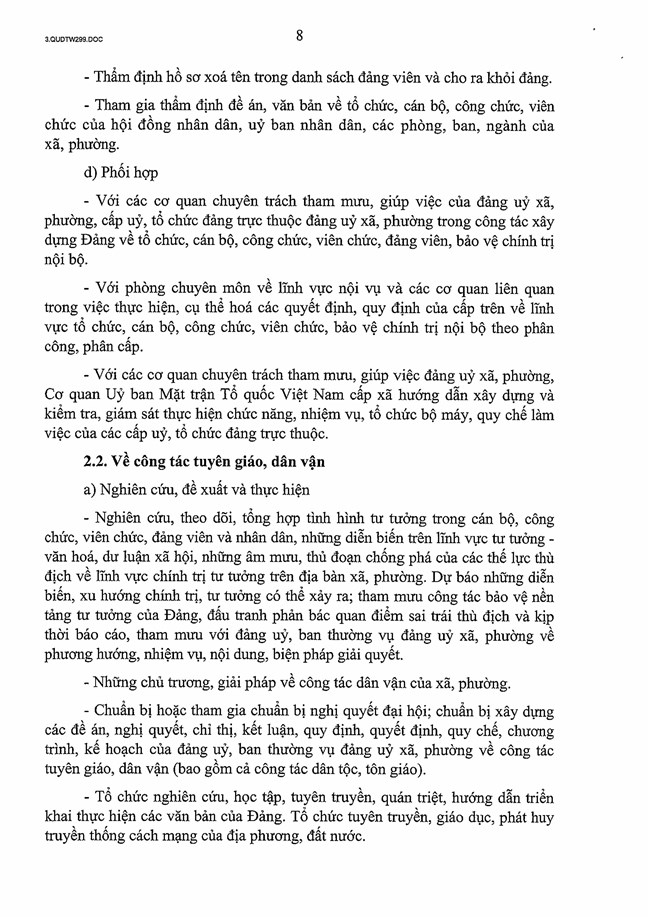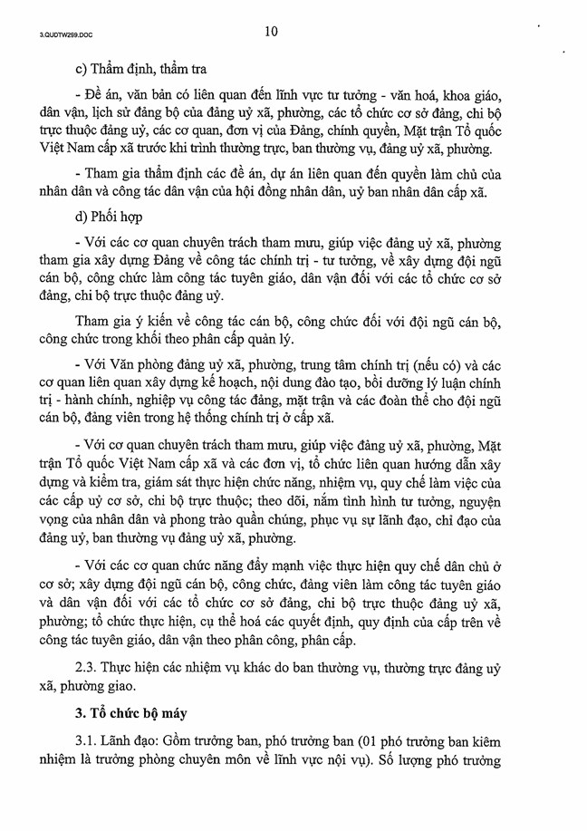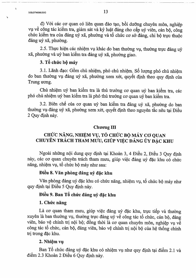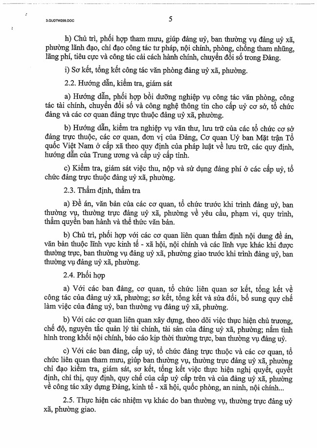 TOÀN VĂN: Quy định số 299-QĐ/TW chức năng, nhiệm vụ, tổ chức bộ máy cơ quan chuyên trách tham mưu, giúp việc đảng uỷ xã, phường, đặc khu