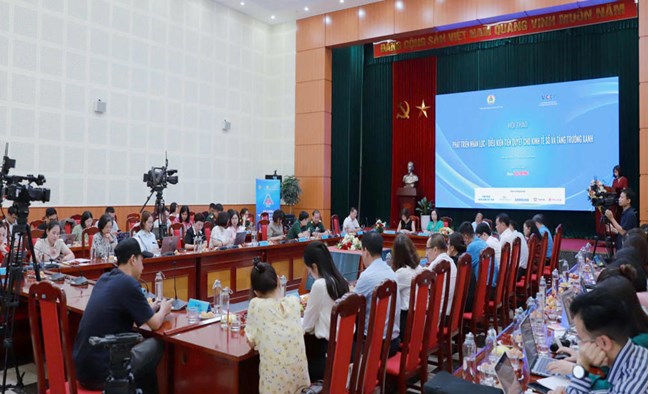 | Toàn cảnh Hội thảo “Phát triển nhân lực – điều kiện tiên quyết cho kinh tế số và tăng trưởng xanh”. Ảnh Tô Thế |