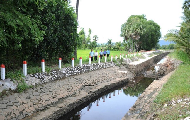 | Hệ thống kênh mương thuỷ lợi nội đồng được đầu tư bê tông hoá, phục vụ hoạt động sản xuất, đời sống của bà con vùng đồng bào dân tộc Khmer ở phường Tịnh Biên, tỉnh An Giang. |