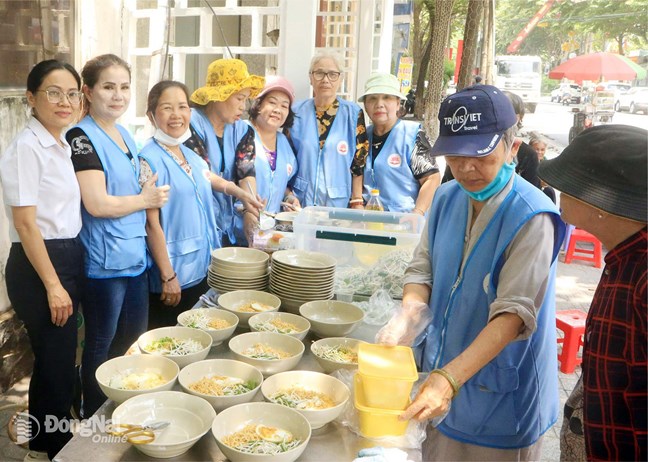 | Hội viên Hội Từ thiện tỉnh phục vụ Bữa trưa 0 đồng tại số 102, đường Hưng Đạo Vương, phường Trấn Biên. Ảnh: Văn Truyên |
