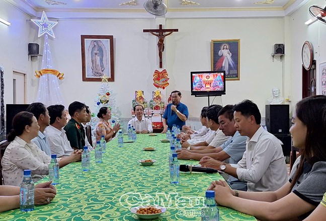 (Mặt trận) - Ngày 22/12, Đoàn công tác do ông Hồ Thanh Thuỷ, Phó Bí thư Tỉnh ủy, Chủ tịch Ủy ban MTTQ Việt Nam tỉnh Cà Mau, làm Trưởng đoàn đến thăm, chúc mừng Giáng sinh tại Ủy ban Đoàn kết Công giáo tỉnh Cà Mau và Hạt Công giáo Cà Mau (Giáo xứ Quản Long), phường An Xuyên.