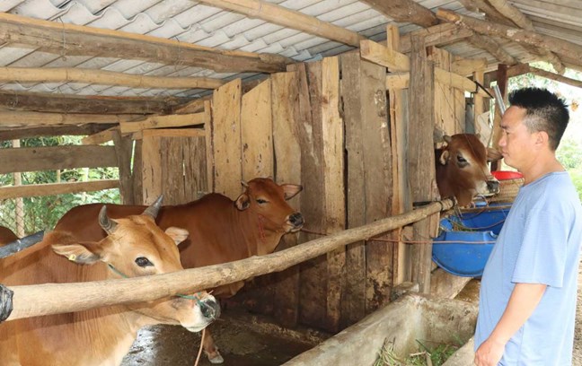 | Gia đình anh Sồng A Nanh, bản Kéo Bó, xã Tà Hộc được hỗ trợ bò sinh sản từ Chương trình MTQG 1719. |