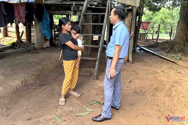 | Thầy giáo Nguyễn Phùng Hiền - Phó Hiệu trưởng Trường Phổ thông Dân tộc nội trú - THCS Buôn Đôn vào rừng sâu của xã Buôn Đôn vận động phụ huynh cho con em đến trường. Ảnh: Hải Dương |