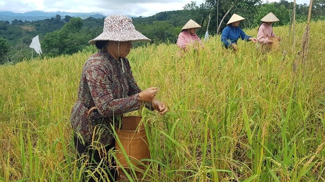 Đồng bào K’ho thu hoạch lúa mẹ