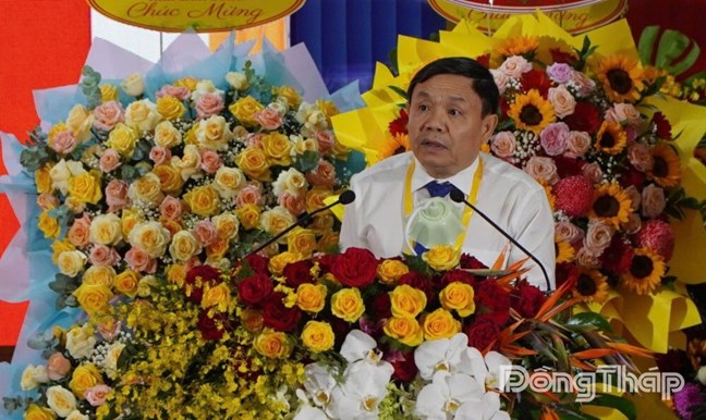 | Ông Phan Văn Thắng, Phó Bí thư Thường trực Tỉnh ủy, Chủ tịch Ủy ban MTTQ Việt Nam tỉnh Đồng Tháp phát biểu tại Đại hội |
