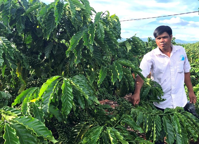Từ vài sào đất ban đầu, đến nay anh đã mở rộng diện tích lên 5 ha cà phê, trong đó gần 4 ha đã cho thu hoạch ổn định, sản lượng năm 2024 đạt 20 tấn nhân, bán với giá 123 nghìn đồng/kg. Ngoài ra, anh còn nuôi bò, trồng sầu riêng để đa dạng nguồn thu.