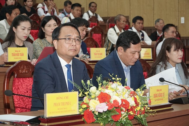 Dự buổi gặp mặt có các đồng chí: Đặng Hồng Sỹ, Phó Bí thư Thường trực Tỉnh ủy; Phạm Thị Phúc, Phó Bí thư Tỉnh ủy, Chủ tịch Ủy ban MTTQ Việt Nam tỉnh; K’ Mák, Ủy viên Ban Thường vụ Tỉnh ủy, Phó Chủ tịch HĐND tỉnh; Hà Thị Hạnh, Ủy viên Ban Thường vụ Tỉnh ủy, Phó Chủ tịch Ủy ban MTTQ Việt Nam tỉnh; Nguyễn Ngọc Phúc, Tỉnh ủy viên, Phó Chủ tịch UBND tỉnh.