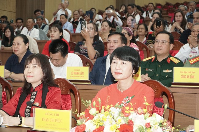 | Đồng chí Phạm Thị Phúc, Phó Bí thư Tỉnh ủy, Chủ tịch Ủy ban MTTQ Việt Nam tỉnh; Hà Thị Hạnh, Ủy viên Ban Thường vụ Tỉnh ủy, Phó Chủ tịch Ủy ban Mặt trận Tổ quốc Việt Nam tỉnh dự buổi gặp mặt |