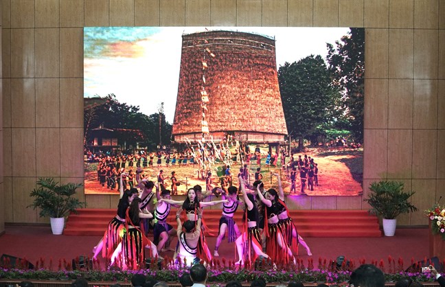 Đồng chí Hà Thị Hạnh, Ủy viên Ban Thường vụ Tỉnh ủy, Phó Chủ tịch Ủy ban MTTQ Việt Nam tỉnh đã đọc lại Thư của Bác Hồ gửi Đại hội đại biểu các dân tộc thiểu số miền Nam tại Pleiku và Quyết tâm thư Đại hội Đại đoàn kết các dân tộc Tây Nguyên năm 2006