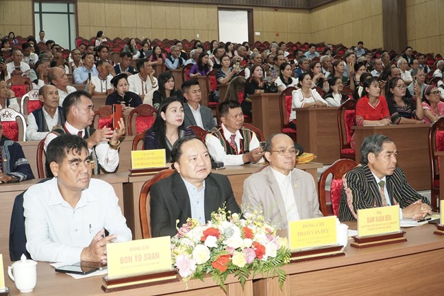 Các đại biểu cũng đã trình bày tham luận, chia sẻ kinh nghiệm trong giữ gìn an ninh chính trị, bảo vệ biên cương, tham gia các phong trào thi đua yêu nước; đồng thời nêu bật vai trò của đồng bào trong bảo tồn, phát huy bản sắc văn hóa truyền thống.