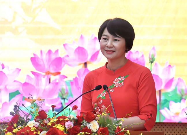 | Đồng chí Phạm Thị Phúc, Phó Bí thư Tỉnh ủy, Chủ tịch Ủy ban MTTQ Việt Nam tỉnh phát biểu tại buổi gặp mặt |