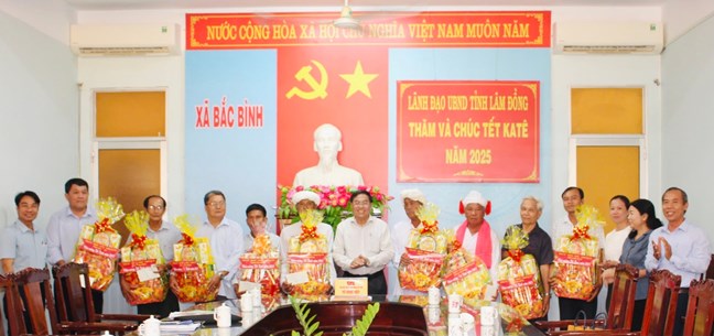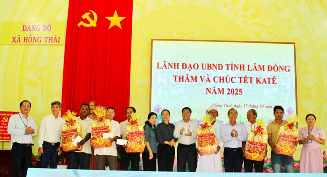 (Mặt trận) - Sáng 17/10, Đoàn công tác tỉnh Lâm Đồng do đồng chí Võ Ngọc Hiệp, Ủy viên Ban Thường vụ Tỉnh ủy, Phó Chủ tịch UBND tỉnh làm Trưởng đoàn đã đến thăm và chúc Tết Katê đồng bào Chăm theo đạo Bàlamôn tại xã Hồng Thái và Bắc Bình. Cùng đi có đại diện lãnh đạo Ủy ban MTTQ Việt Nam tỉnh, Ban Dân tộc Hội đồng nhân dân tỉnh, Sở Dân tộc và Tôn giáo…