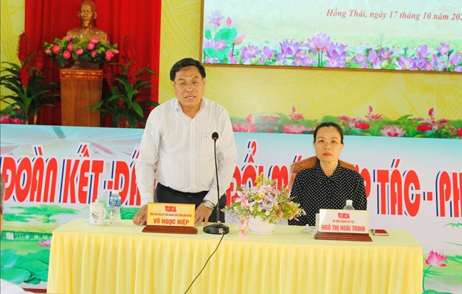| Đồng chí Võ Ngọc Hiệp, Ủy viên Ban Thường vụ Tỉnh ủy, Phó Chủ tịch UBND tỉnh thăm và chúc Tết Katê tại xã Hồng Thái |
