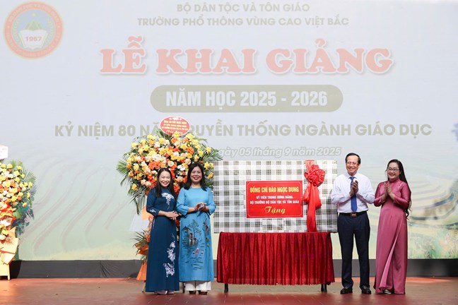 Tại lễ khai giảng năm học mới, Bộ trưởng Bộ Dân tộc và Tôn giáo Đào Ngọc Dung đã gửi lời chúc mừng nồng nhiệt tới toàn thể cán bộ, giáo viên và học sinh Trường Phổ thông Vùng cao Việt Bắc – một ngôi trường giàu truyền thống, đóng vai trò đặc biệt trong sự nghiệp giáo dục vùng dân tộc thiểu số.