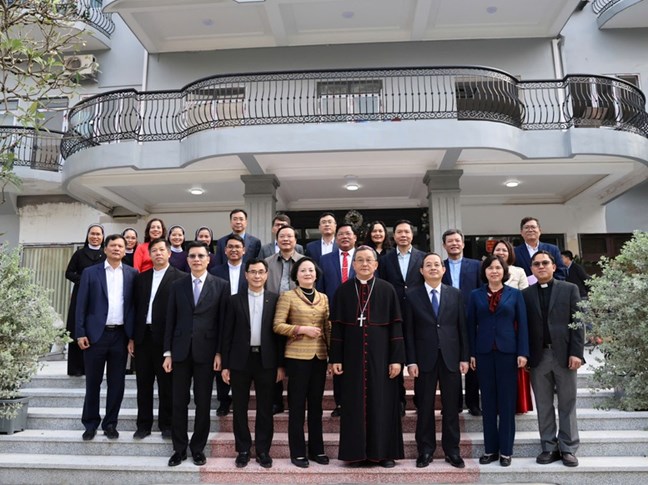 | Phó Thủ tướng Phạm Thị Thanh Trà cùng đoàn công tác đến thăm, chúc mừng Tòa Giám mục Bắc Ninh - Ảnh: VGP/Thu Giang |