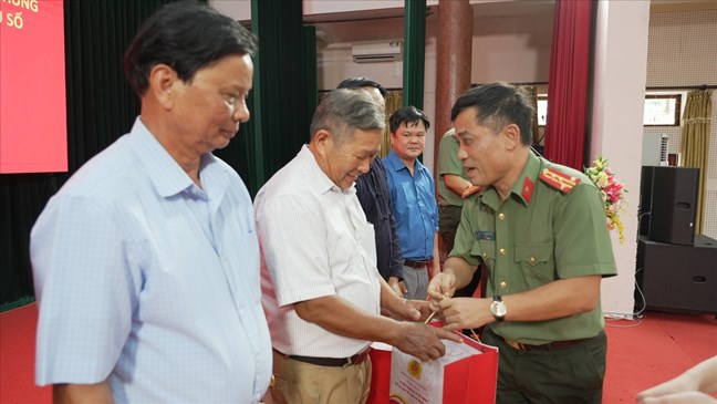| Lãnh đạo Công an tỉnh Cao Bằng tặng quà, khen thưởng Người có uy tín tiêu biểu trong phong trào bảo vệ An ninh Tổ quốc (Ảnh: Công an Cao Bằng) |
