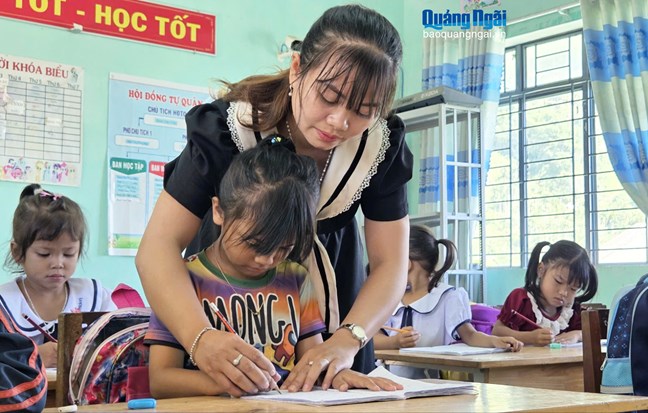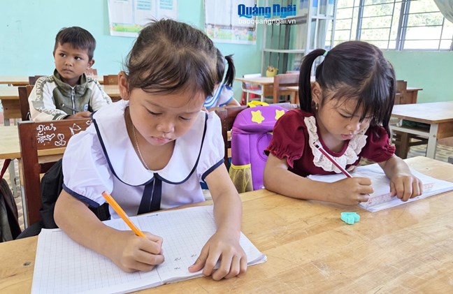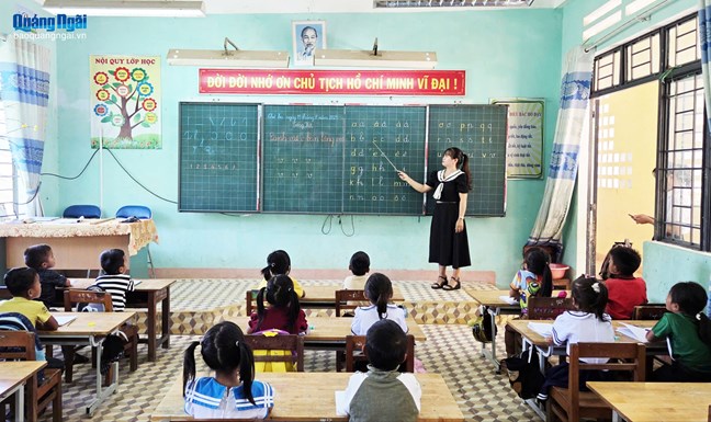 | Việc dạy tiếng Việt cho học sinh dân tộc thiểu số đang được ngành giáo dục Quảng Ngãi chú trọng triển khai |