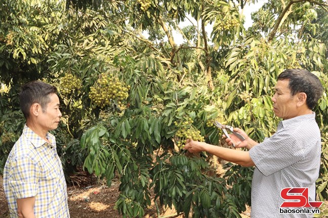 Người có uy tín xã Chiềng Khương (bên phải), tỉnh Sơn La  hướng dẫn kỹ thuật trồng nhãn chín sớm cho nhân dân trong xã.