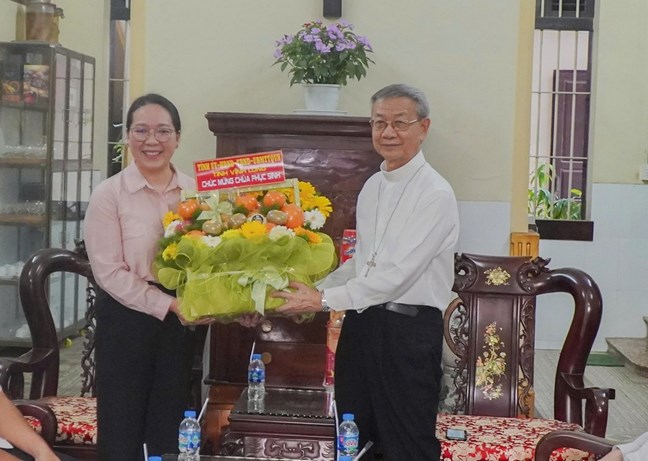 Đoàn đến chúc mừng Lễ Phục sinh tại Tòa Giám mục Giáo phận Vĩnh Long