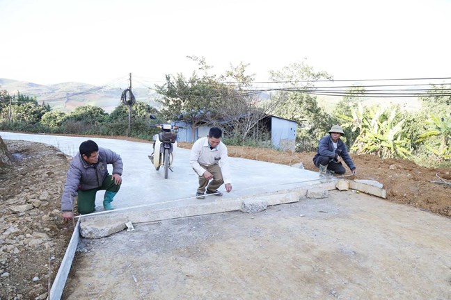 Còn tại tiểu khu Sao Đỏ 1, con đường đất từ trung tâm xã về tiểu khu dài 430m, đang dần thay thế bằng tuyến đường bê tông kiên cố. Công trình có tổng mức đầu tư gần 1,2 tỷ đồng từ nguồn vốn Chương trình MTQG 1719, với quy hoạch mặt đường rộng 4m, đến nay đã thi công được 80% khối lượng, dự kiến sẽ hoàn thành và bàn giao cuối tháng 12/2025. Ông Bàn Văn Xuân, Bí thư Chi bộ, Tiểu khu trưởng, cho biết: Trước đây, bà con vận chuyển nông sản từ khu sản xuất về nhà, hay đưa con trẻ đi học thường phải đi vòng qua tuyến quốc lộ 6 cũ, vừa xa, vừa bất tiện. Khi Nhà nước đầu tư làm tuyến đường này, quãng đường di chuyển rút ngắn xuống chỉ còn 1/3, thuận tiện cho việc đi lại, sản xuất, nhân dân ai cũng phấn khởi.