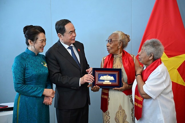 | Chủ tịch Quốc hội Trần Thanh Mẫn và Phu nhân trao tặng cộng đồng người Việt tại Senegal biểu trưng Nhà Quốc hội Việt Nam |