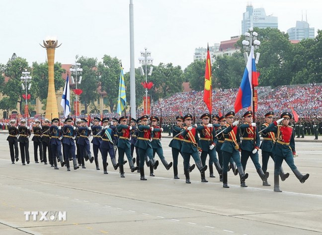 | Khối Lực lượng vũ trang Liên bang Nga tại Lễ Kỷ niệm, diễu binh, diễu hành 80 năm Cách mạng tháng Tám thành công và Quốc khánh Việt Nam 2/9. (Ảnh: Lâm Khánh/TTXVN) |
