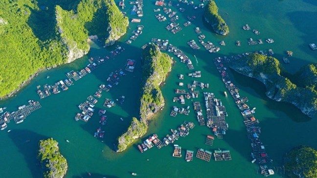 | Năm 2023, Quần thể Vịnh Hạ Long - Quần đảo Cát Bà (thuộc địa bàn tỉnh Quảng Ninh và thành phố Hải Phòng) được công nhận là Di sản Thiên nhiên Thế giới. Trong ảnh: Vẻ đẹp của Vịnh Lan Hạ (nằm ở phía Đông đảo Cát Bà) nhìn từ trên cao. (Ảnh: Minh Đức/TTXVN) |