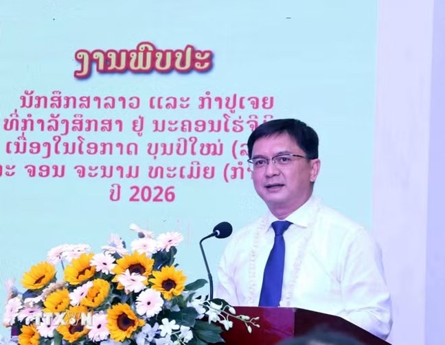 | Ông Nguyễn Mạnh Cường, Phó Chủ tịch UBND Thành phố Hồ Chí Minh chúc Tết cổ truyền dân tộc Lào, Campuchia đến các sinh viên Lào, Campuchia đang học tập tại Thành phố Hồ Chí Minh. (Ảnh: Xuân Khu/TTXVN) |