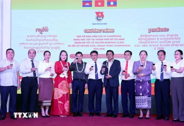 Tối 13/4, tại Thành phố Hồ Chí Minh, Thành Đoàn Thành phố Hồ Chí Minh tổ chức chương trình gặp mặt, chúc mừng sinh viên Lào, Campuchia đang học tập trên địa bàn, nhân dịp Tết cổ truyền Bunpimay (Lào) và Chôl Chnăm Thmây (Campuchia).