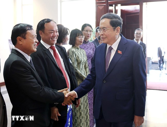 | Thủ tướng Chính phủ Phạm Minh Chính; Chủ tịch Quốc hội Trần Thanh Mẫn, cùng Đoàn đại biểu cấp cao Đảng, Nhà nước Việt Nam tham dự buổi gặp mặt. (Ảnh: Dương Giang/TTXVN) |