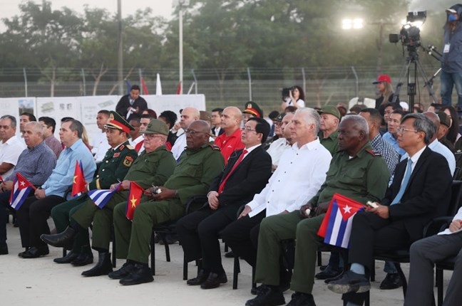 Lễ kỷ niệm 65 năm thiết lập quan hệ ngoại giao Việt Nam - Cuba có sự tham dự của Bí thư thứ nhất, Chủ tịch nước Cuba Miguel Diaz Canel; các đồng chí Ủy viên Bộ Chính trị, Bí thư Trung ương Đảng, Lãnh đạo địa phương và khoảng 1.000 cán bộ, nhân dân thị trấn Juraco, Thủ đô La Habana, Cuba.