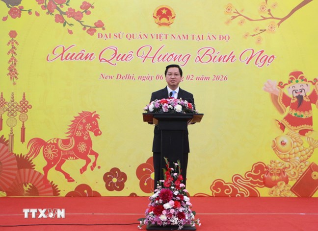 Tối 6/2 (giờ địa phương), tại trụ sở ở thủ đô New Delhi của Ấn Độ, Đại sứ quán Việt Nam đã long trọng tổ chức Chương trình Xuân Quê hương-Bính Ngọ 2026, quy tụ hơn 200 cán bộ, kiều bào, tăng ni sinh, sinh viên, kỹ sư và trí thức trẻ Việt Nam đang sinh sống, làm việc và học tập tại Ấn Độ.