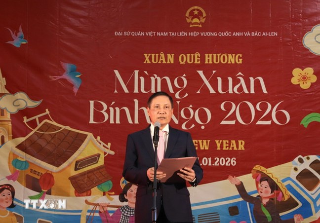 Tối 31/1 (giờ London), Đại sứ quán Việt Nam tại Vương quốc Anh đã tổ chức chương trình Tết Bính Ngọ 2026, thu hút đông đảo bà con người Việt và đại diện các hội đoàn tại Anh, cùng nhiều vị khách quốc tế-đại diện các cơ quan ngoại giao của Anh, ASEAN, Trung Quốc, Nga, Hàn Quốc, Ấn Độ, Cuba...