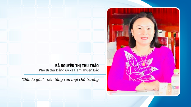 Bà Nguyễn Thị Thu Thảo, Phó Bí thư Đảng ủy xã Hàm Thuận Bắc rất tâm đắc với quan điểm xuyên suốt của Dự thảo Văn kiện: “Dân là gốc”, Nhân dân là chủ thể, là trung tâm của sự nghiệp đổi mới. Theo bà, mọi chủ trương, chính sách của Đảng và Nhà nước phải xuất phát từ nhu cầu, nguyện vọng, lợi ích chính đáng của Nhân dân; lấy hạnh phúc, sự hài lòng của Nhân dân làm thước đo hiệu quả.