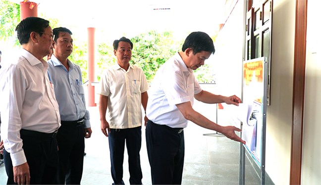 Bí thư Thành ủy Lê Quang Tùng kiểm tra Khu vực bầu cử số 4, Đơn vị bầu cử số 2 (tại Khu lưu niệm Chi bộ Đảng đầu tiên quận Thốt Nốt cũ). Ảnh: Anh Dũng