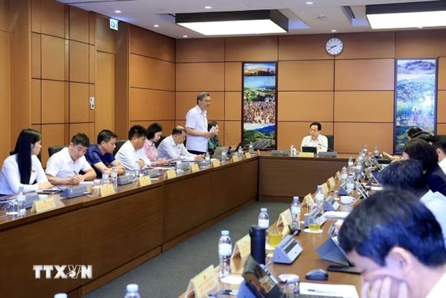 | Các đại biểu thảo luận tại tổ sáng 10/4. (Ảnh: Tuấn Anh/TTXVN) |