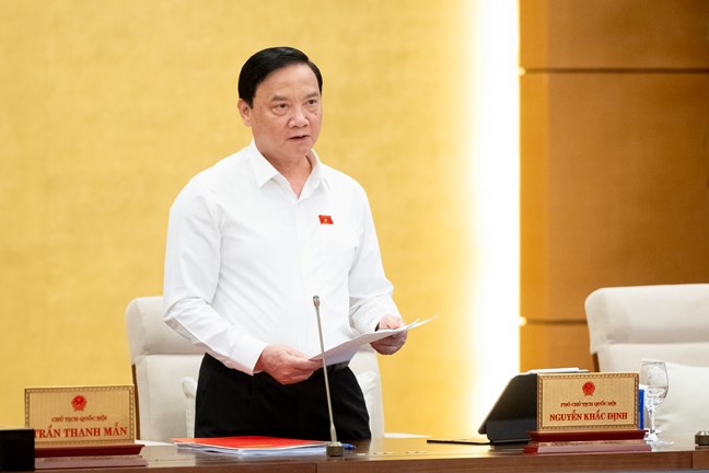 | Phó Chủ tịch Quốc hội Nguyễn Khắc Định phát biểu |
