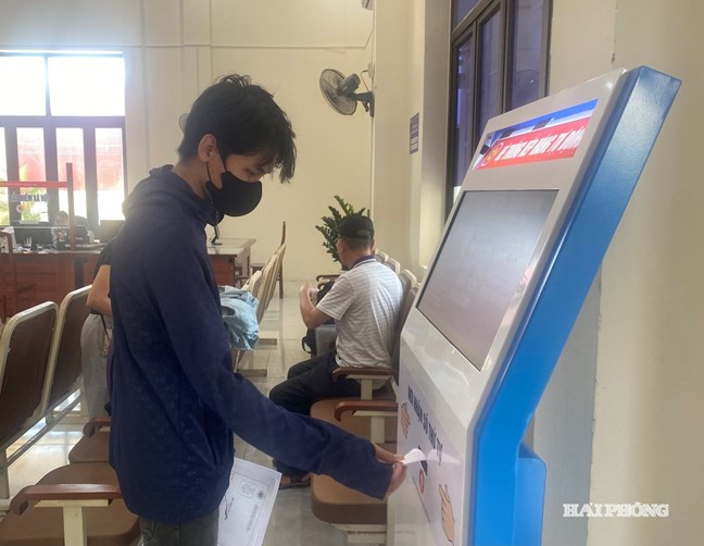 | Người dân lấy số thứ tự động giải quyết thủ tục hành chính tại xã Thái Tân |