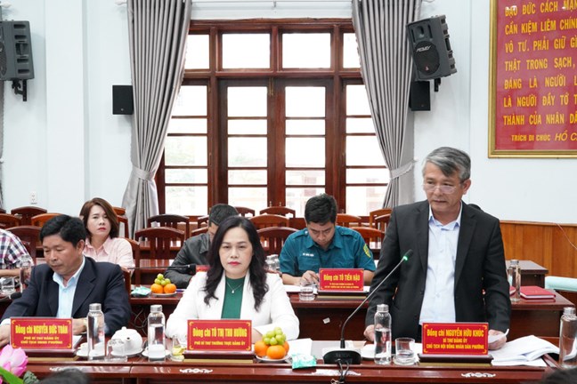 | Bí thư Đảng ủy, Chủ tịch HĐND phường Quy Nhơn Nguyễn Hữu Khúc báo cáo công tác triển khai chuẩn bị bầu cử trên địa bàn phường. Ảnh: N.H |
