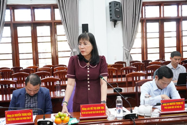 | Phó Chủ tịch Ủy ban MTTQ Việt Nam tỉnh Hồ Thị Kim Thu phát biểu làm rõ một số vấn đề liên quan đến công tác chuẩn bị bầu cử. Ảnh: N.H |