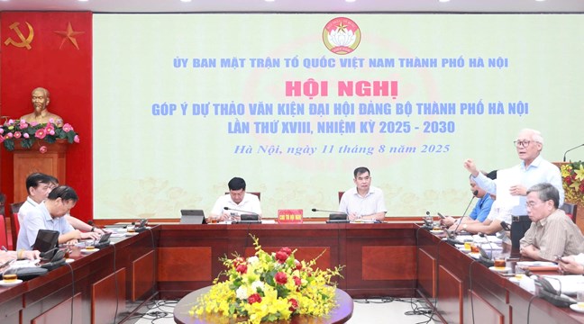 (Mặt trận) - Sáng 11-8, Ủy ban MTTQ Việt Nam thành phố Hà Nội tổ chức Hội nghị Góp ý Dự thảo Văn kiện Đại hội Đảng bộ thành phố Hà Nội lần thứ XVIII, nhiệm kỳ 2025-2030.