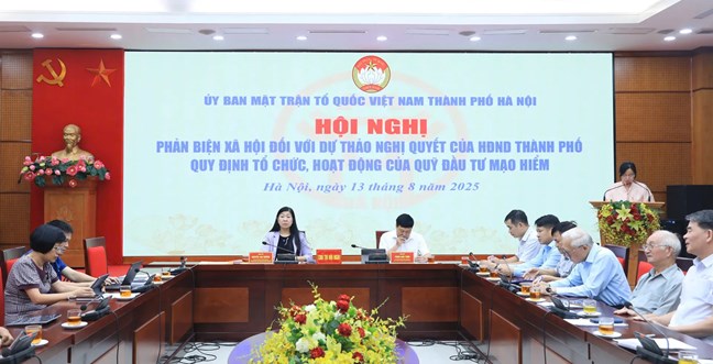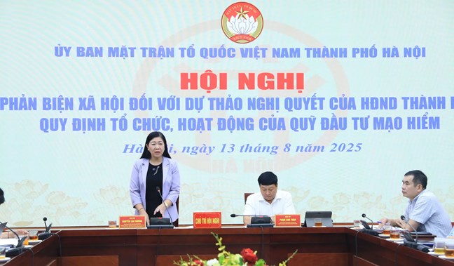 Chiều 13/8, Ủy ban Mặt trận Tổ quốc (MTTQ) Việt Nam TP Hà Nội tổ chức Hội nghị phản biện xã hội đối với Dự thảo Nghị quyết của HĐND TP Hà Nội quy định tổ chức, hoạt động của Quỹ Đầu tư mạo hiểm.