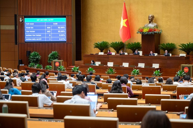 Với 440/441 đại biểu Quốc hội có mặt biểu quyết tán thành, Quốc hội thông qua Nghị quyết của Quốc hội về miễn, hỗ trợ học phí đối với trẻ em mầm non, học sinh phổ thông, người học chương trình giáo dục phổ thông tại các cơ sở giáo dục trong hệ thống giáo dục quốc dân. Nghị quyết này có hiệu lực thi hành từ ngày được Quốc hội thông qua và áp dụng từ năm học 2025-2026.