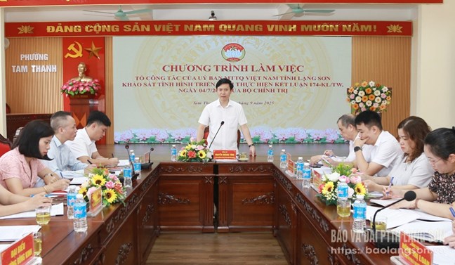 (Mặt trận) - Sáng 4/9, Tổ công tác số 1 của Ban Thường trực Ủy ban MTTQ Việt Nam tỉnh do ông Nguyễn Hoàng Tùng, Ủy viên Ban Thường vụ Tỉnh ủy, Chủ tịch Ủy ban MTTQ Việt Nam tỉnh làm Tổ trưởng làm việc với đại diện lãnh đạo Đảng ủy và Ban Thường trực Ủy ban MTTQ 4 phường: Tam Thanh, Kỳ Lừa, Đông Kinh và Lương Văn Tri để nắm tình hình, tháo gỡ khó khăn ở cơ sở sau sáp nhập, hợp nhất, tinh gọn bộ máy MTTQ và các tổ chức chính trị - xã hội trên địa bàn.