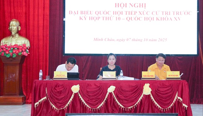 Mở đầu Hội nghị tiếp xúc cử tri, đại biểu Quốc hội chuyên trách Trần Nhật Minh thông báo đến cử tri nội dung, chương trình Kỳ họp thứ 10, Quốc hội khóa XV, dự kiến khai mạc vào ngày 20/10/2025.