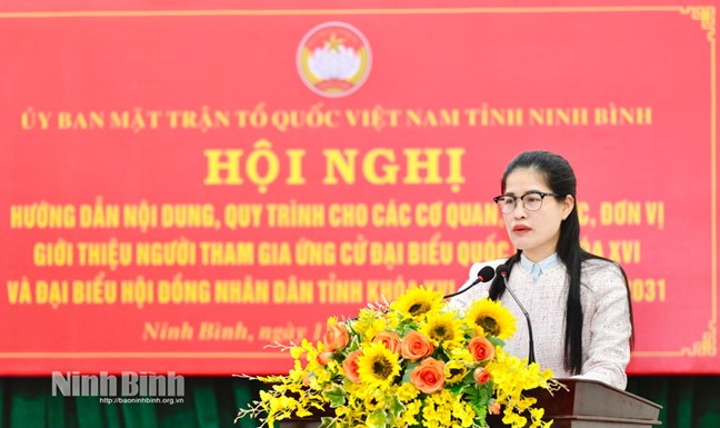 Tại hội nghị, lãnh đạo Ủy ban MTTQ Việt Nam tỉnh đã hướng dẫn nội dung, quy trình 03 bước trong việc giới thiệu người ứng cử, bao gồm: Họp ban lãnh đạo cơ quan, tổ chức, đơn vị để dự kiến người giới thiệu ứng cử; Tổ chức hội nghị lấy ý kiến cử tri nơi công tác để người ứng cử nhận được sự tín nhiệm của cử tri tại đơn vị; Tổ chức hội nghị ban lãnh đạo mở rộng để thảo luận, giới thiệu chính thức người ứng cử.
